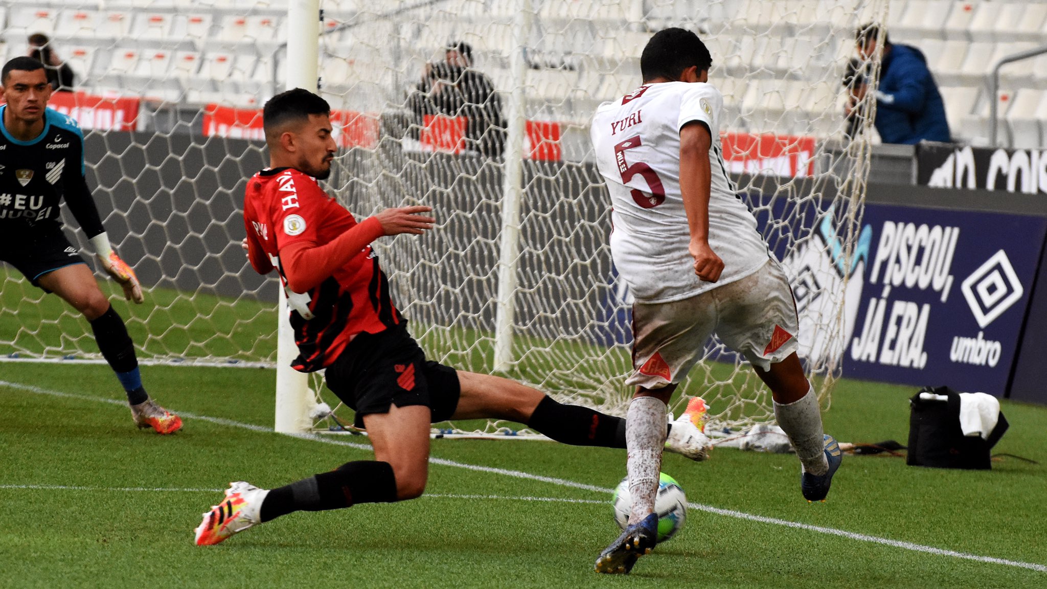 Primeiro tempo agitado na fria Curitiba. O Tricolor chegou a balançar duas vezes as redes, com Lucas Claro e Michel Araújo, mas em ambas o árbitro, auxiliado pelo VAR, anulou. Acontece que Flu contou com uma ajudinha do Furacão para poder ficar em vantagem no duelo. Aos 48, Yuri Lima cruzou da linha de fundo, Aguilar tentou cortar e acabou mandando contra o próprio gol: 1 a 0 Fluminense na etapa inicial.