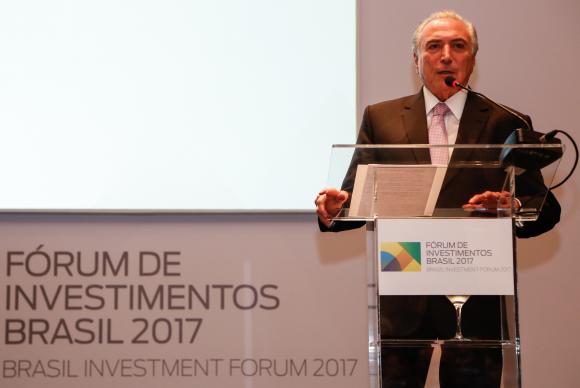 Temer discursou na abertura do Fórum de Investimentos Brasil 2017, evento que reúne investidores de mais de 42 países e de 22 setores da economia. O presidente procurou indicar que o país saiu da recessão, mas que ainda tem “muitos desafios”. Sem citar quais, enfatizou: “mas nós não tenhamos dúvida: o Brasil é muito maior do que todos esses desafios circunstanciais, acidentais, que ocorrem nos últimos tempos”. O encontro com empresários ocorre 10 dias após a divulgação da delação premiada dos executivos da JBS, que envolveu o presidente Temer e teve forte impacto no cenário político.