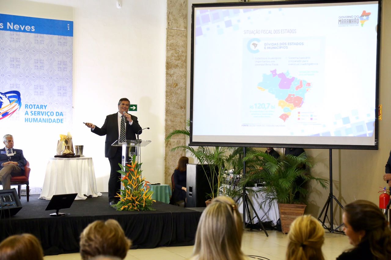 O governador Flávio Dino proferiu, nesta sexta-feira (21), palestra na 66ª Conferência da Harmonia do Distrito 4490 dos estados do Maranhão, Piauí e Ceará, evento do Rotary Internacional, realizado no Hotel Pestana, oportunidade em que falou das “Oportunidades de investimentos no Maranhão”.