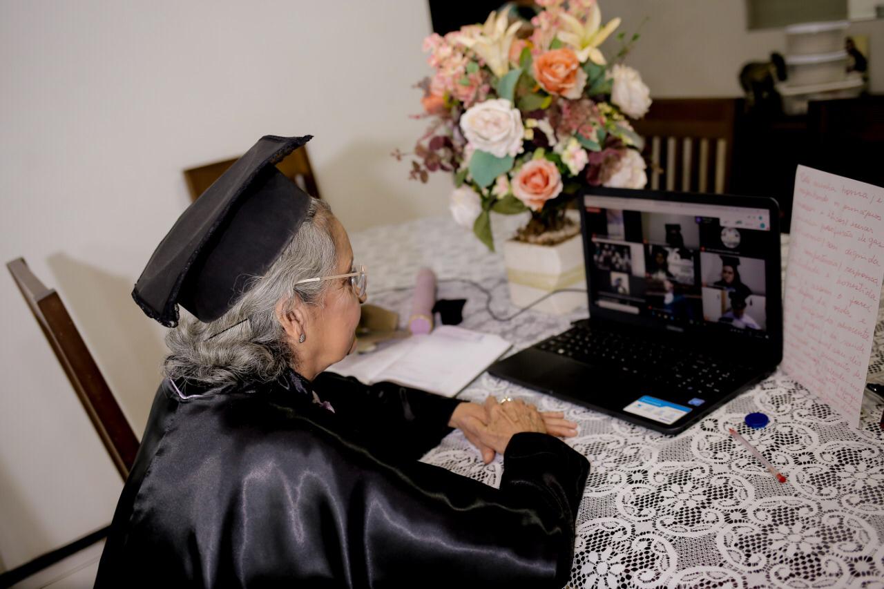 A colação de grau também foi virtual, mas sem perder o brilho e a emoção da conquista. “Para os jovens que pensam em desistir dos seus sonhos, eu digo que qualquer tempo é tempo. Se a gente não tem condições de realizar os nossos sonhos na juventude, a gente realiza quando Deus determina. E sempre é o tempo certo”, conclui a aposentada.