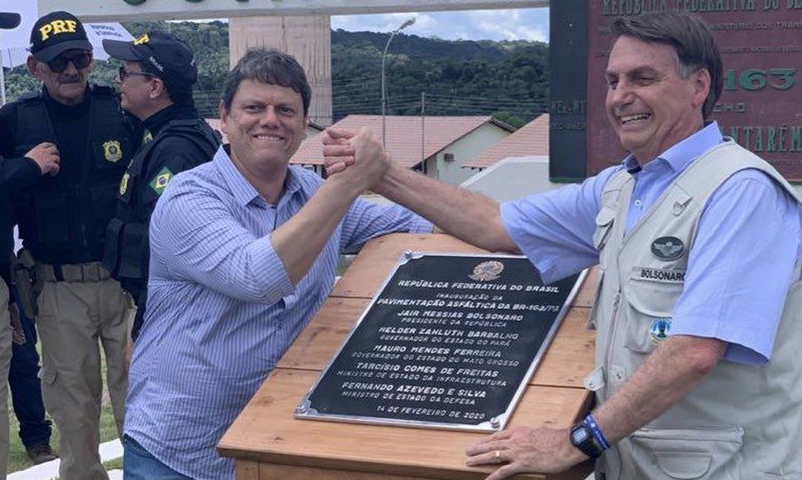 O presidente Jair Bolsonaro participou, na tarde desta sexta-feira (14), da solenidade de inauguração de um trecho pavimentado da BR-163, em Miritituba (PA). A rodovia, importante via de ligação de Mato Grosso com portos do Rio Tapajós, no Pará, começou a ser construída na década de 1970, mas só foi concluída ao longo do último ano.