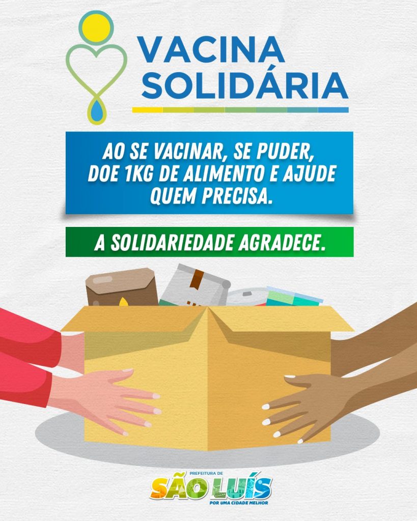 “Sabemos como a pandemia trouxe muitos desafios para a vida das pessoas. E esses desafios têm sido cada vez maiores. Pensando nisso, iniciamos a campanha Vacina Solidária. A pessoa que puder, na hora de se vacinar contra a Covid-19 em um dos nossos pontos de vacinação, traga 1kg de alimento não perecível que, após coletado, será doado a quem mais precisa”, informou o prefeito.