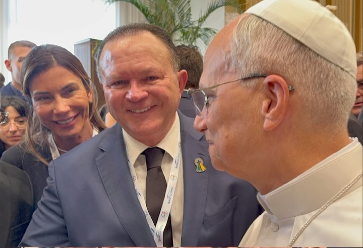 Compartilhar WhatsApp Twitter Facebook Email Copy Link CONVERSA FRANCA Diga lá, Santidade No encontro com Papa Leão XIV, neste sábado (21), no Jubileu de Governantes, no Vaticano, o governador do Maranhão, Carlos Brandão, cumprimentou Sua Santidade com intimidades, com tampinhas nas costas do Santo Padre.