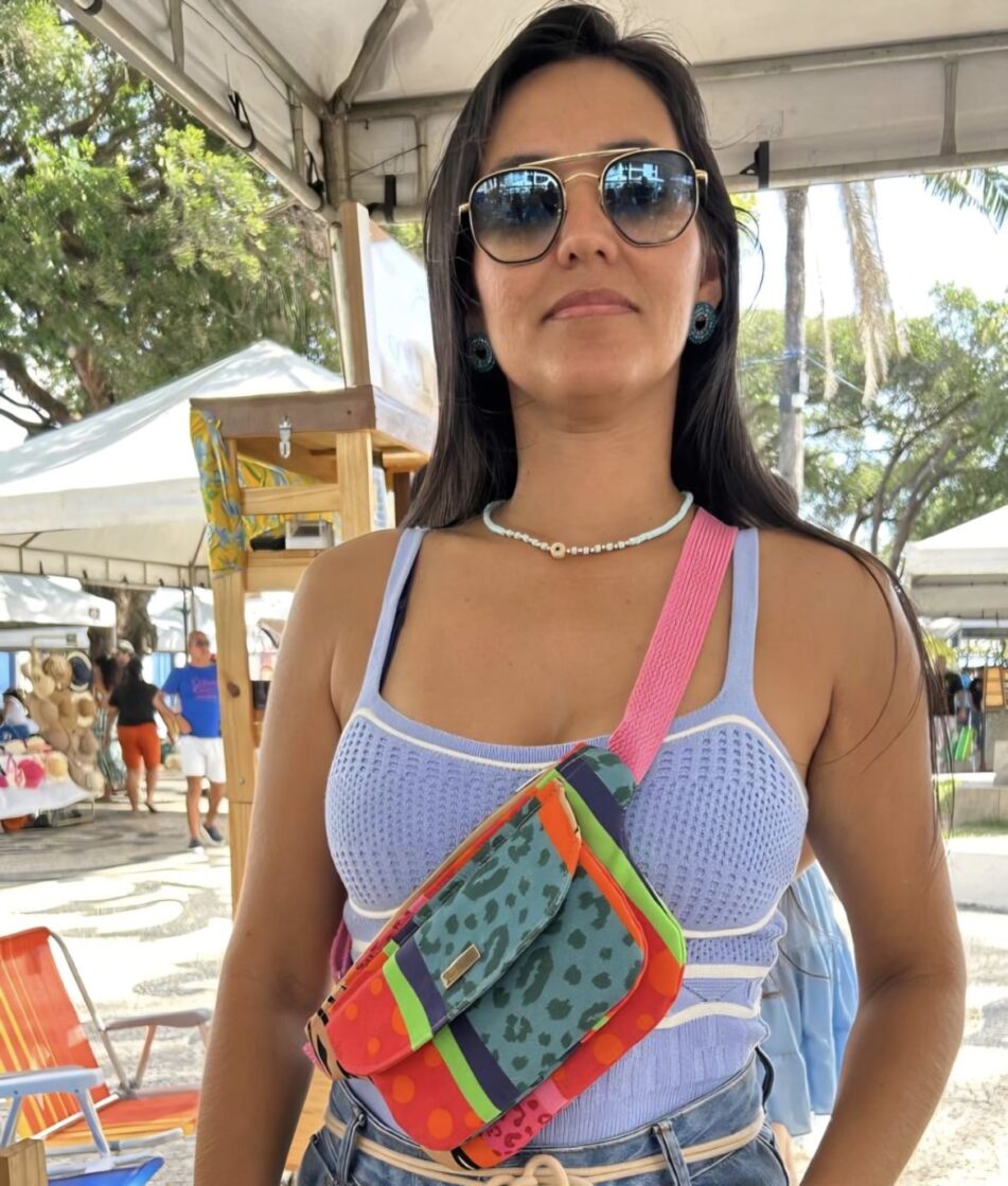Já Liliane Diniz, do Ateliê Costuras Criativas da Lica, aposta em uma novidade: a Pochete Folia. O acessório, além de colorido, leve e funcional, ajuda a compor looks descolados e se converte em um item de segurança, perfeito para acomodar documentos, o celular, dinheiro e apetrechos de maquiagem. “Em cada festividade, focamos em itens diferenciados. A pochete, por exemplo, complementa o look ou a fantasia, com graça e beleza”, explicou a empreendedora.