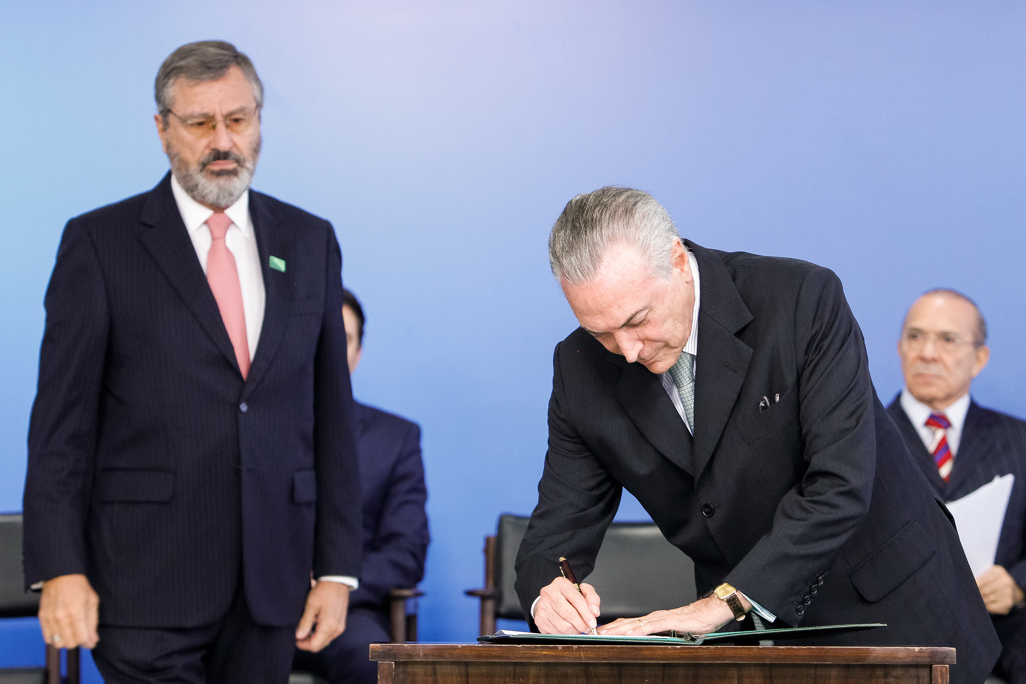Michel Temer assumiu a Presidência da República em 12 de maio de 2016, após os senadores aprovarem a abertura do processo de impeachment de Dilma Rousseff, o que resultou no afastamento dela do cargo. Em agosto, o Senado aprovou o impeachment de Dilma e Temer assumiu a presidência efetivamente.