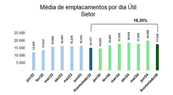 Vale dizer que os emplacamentos acumulados até junho são os melhores para o período desde 2014.