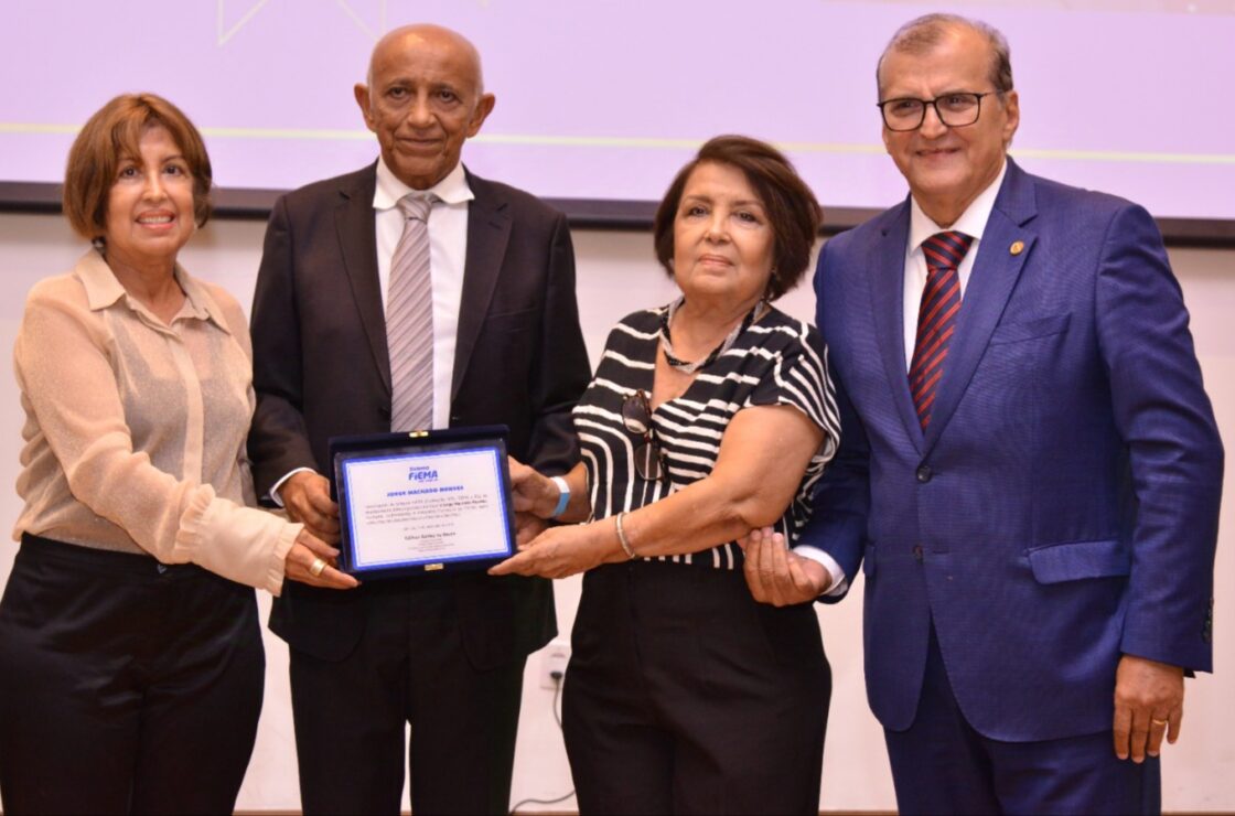 O ex-presidente, fundador e presidente honorário da Fiema Jorge Machado Mendes, representado por suas filhas Rosemary e Maria de Fátima, recebeu uma Placa de Reconhecimento pela trajetória de vida e trabalho que reflete dedicação exemplar à Federação e ao desenvolvimento da indústria do Maranhão.
