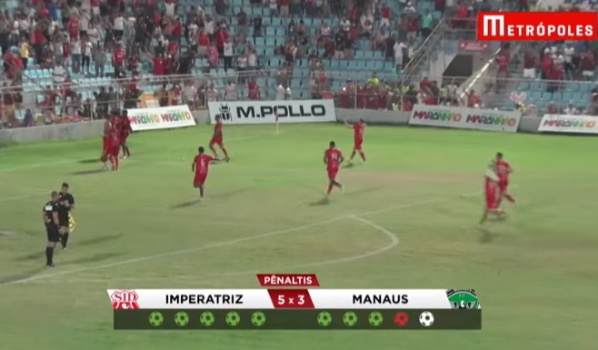 Nas cobranças de pênaltis, Wanderson, Jonas e Gustavo Lila marcaram para o Manaus, mas Gabriel Masson parou no goleiro Redson. Pelo Imperatriz, Rayllan, Hitalo, Felipe Macena, Nassom e Weslley Santos converteram e garantiram a vaga na próxima fase.