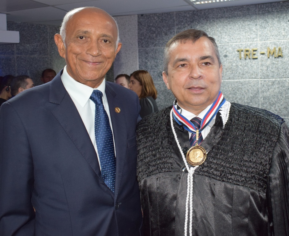 O presidente do TRE-MA, desembargador Cleones Carvalho Cunha com Edilson Baldez