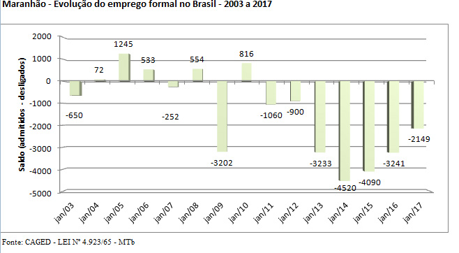 Apesar do alto índice, janeiro deste foi bem melhor que o de 2016, quando no Maranhão foram fechados 3.241 postos de trabalho.