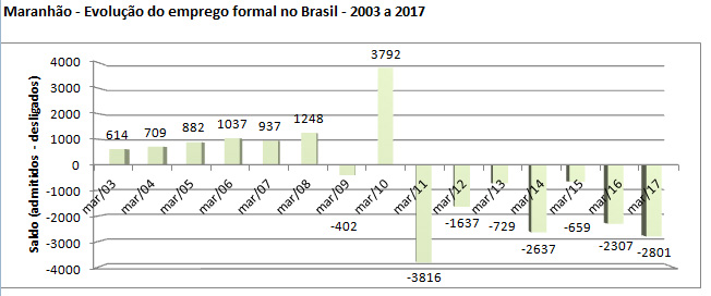 De acordo com os dados, no mês passado foram admitidas 10.365 pessoas no Maranhão, porém as demissões chegaram a 13.166, e com isto este foi o pior mês de março, desde 2012, em geração de empregos no Estado, contrariando a tendência nacional, que registrou uma perda correspondente a metade do registrado ano passado.