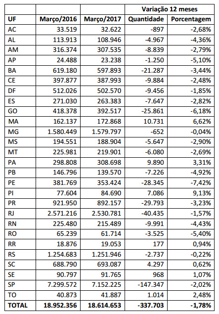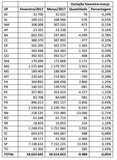 No Maranhão, ao contrário dos números do Brasil, o Maranhão registrou um aumento superior a 2 mil entre fevereiro e março deste ano e de mais de 10 mil entre março de 2016 e março deste ano.