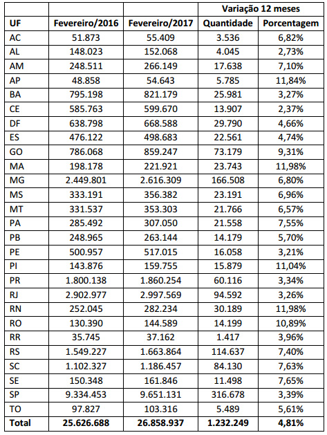 De acordo com a agência, em janeiro havia 219.019 assinantes do serviço no estado e em fevereiro essa clientela aumentou para 221.921. Em janeiro de 2016, o número de usuários no Maranhão era 198.178, ou seja, 23.743 ingressaram no serviço nos últimos 12 meses, o que significa uma variação positiva de 11,98%.