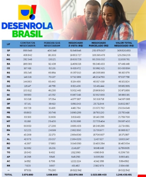 Beneficiados – Levando em conta o Desenrola Brasil como um todo, 12 milhões de pessoas já foram beneficiadas desde julho do ano passado, o que propiciou um volume de R$ 35 bilhões renegociados, referentes a 17 milhões de dívidas, considerando todas as faixas e as negociações feitas diretamente com bancos e pela plataforma.