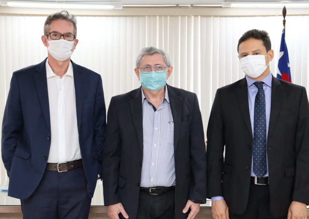 O procurador-geral do Estado do Maranhão, Rodrigo Maia, e o secretário estadual da Fazenda, Marcellus Ribeiro, estiveram reunidos na manhã desta quinta-feira (28) com o presidente do Tribunal de Contas do Estado do Maranhão, Washington Oliveira, para a apresentação da proposta de adesão do TCE ao programa de recuperação de débitos inscritos em dívida ativa de natureza não tributária.