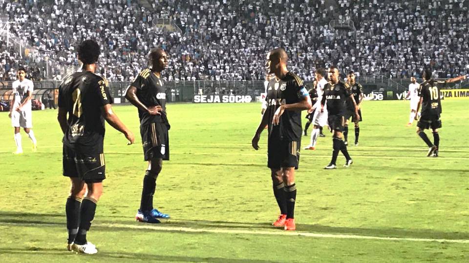A pressão dos donos da casa surgiu efeito aos 21. Clayson lançou Nino Paraíba, que deixou Pottker na cara de Vanderlei. Dessa vez, o artilheiro não desperdiçou e estufou as redes. O Santos se lançou em busca do empate e criou duas chances seguidas. Ricardo Oliveira chutou forte e Aranha espalmou. Depois, Vitor Bueno cruzou rasteiro, a bola desviou em Marlon e só não entrou porque o goleiro pontepretano fez grande defesa.