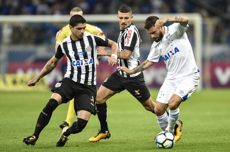 Com um tempo para cada equipe, Cruzeiro e Santos protagonizaram um duelo equilibrado no Mineirão. A primeira chance foi criada pela Raposa, mas foi o Peixe que abriu o placar. Após investida de Thiago Neves aos sete minutos, o time santista respondeu aos 21 e balançou as redes com Bruno Henrique, de cabeça. Na volta do intervalo, o Cruzeiro pressionou e chegou ao empate aos nove minutos com Rafinha. Mesmo sem ângulo, o meia finalizou cruzado e decretou o empate em 1 a 1.