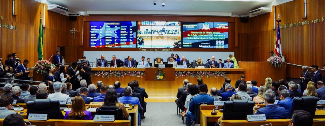 Uma sessão solene histórica realizada nesta quinta-feira (20), no Plenário Nagib Haickel, marcou o encerramento da vasta programação festiva em comemoração aos 190 Anos da Assembleia Legislativa do Estado do Maranhão e, também, ao Dia do Poder Legislativo e aos 35 anos de promulgação da Constituição Estadual.