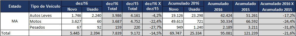 O Maranhão encerrou 2016 na liderança do ranking de financiamentos de veículos na região Nordeste e ocupa a quarta posição no ranking nacional. No total, entre automóveis leves, motos e veículos pesados, o Maranhão atingiu 95.081 veículos financiados em 2016, queda de 21,6% em relação a 2015. O levantamento é da Unidade de Financiamentos da Cetip, que opera o maior banco de dados privado de informações sobre financiamentos de veículos do país, o Sistema Nacional de Gravames (SNG).