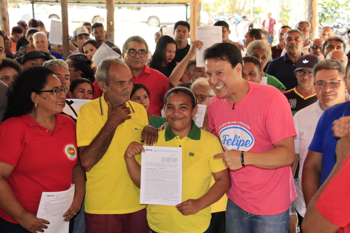 Nesta sexta-feira (04), o vice-governador Felipe Camarão foi ao quilombo Amapá dos Lucindos, no município de Nina Rodrigues, para participar da solenidade de assinatura dos contratos do Minha Casa, Minha Vida Rural. Na ocasião, cinquenta famílias foram contempladas e terão direito a uma moradia digna e nova. O valor total do investimento do governo federal será de R$ 3,5 milhões.